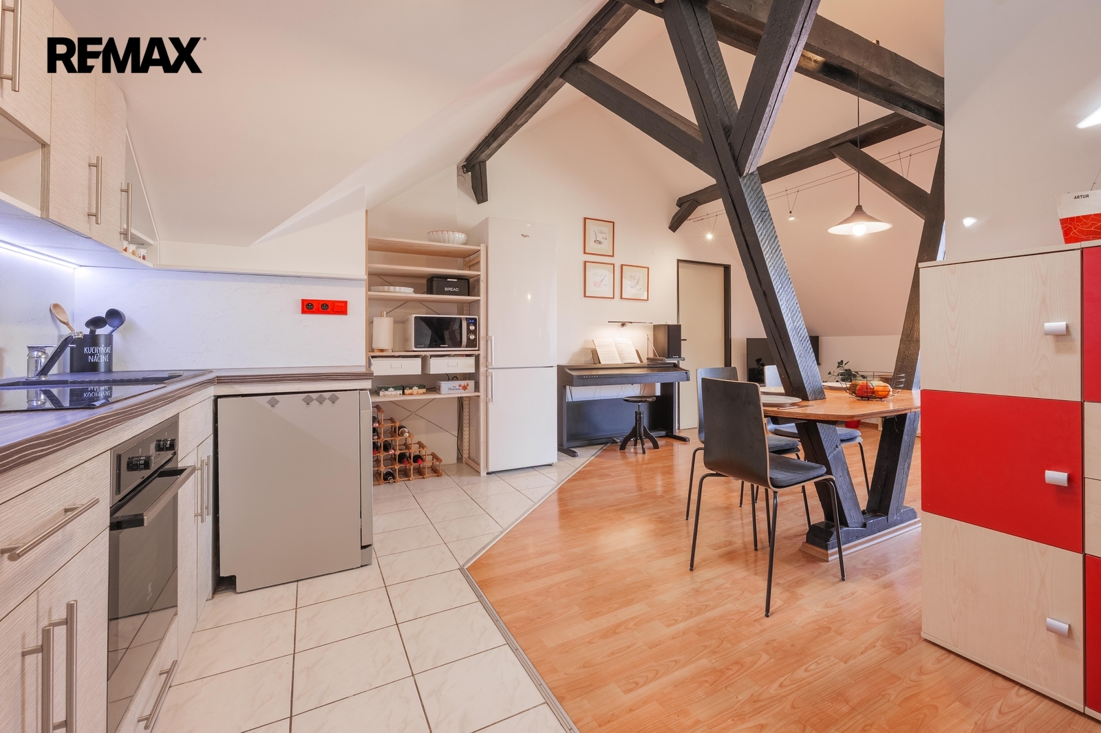 Nabízím k prodeji prostorný podkrovní byt o dispozici 4+kk na adrese Bezručova čtvrť 839/15 v Kuřimi. Byt se nachází ve 4. nadzemním podlaží bytového domu bez výtahu a nabízí podlahovou plochu 111,9 m². K dispozici jsou dvě koupelny, komora a spíž. K bytu náleží sklepní kóje o velikosti 9,7 m² situovaná v 1.PP.