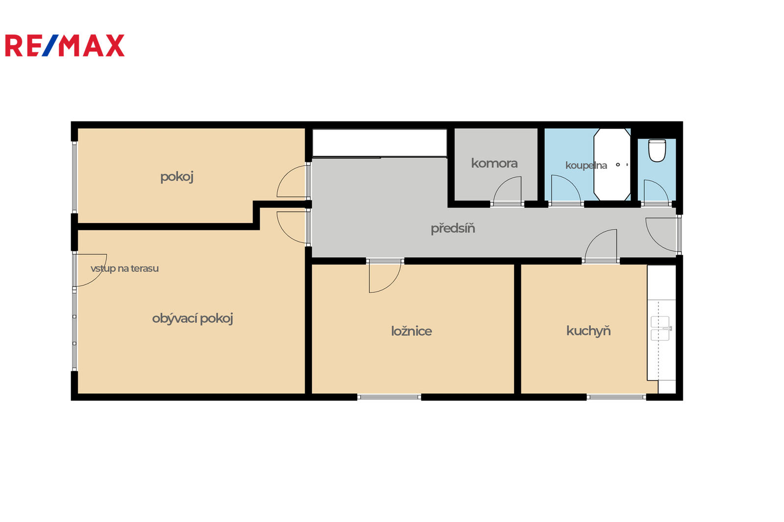 Proč ty uvozovky u "třípokojový"? Protože třemi pokoji pouze začínáme. Ano, v základu je to klasika - kuchyň, obývák, ložnice, dětský pokoj (celkem 69,04m2).
