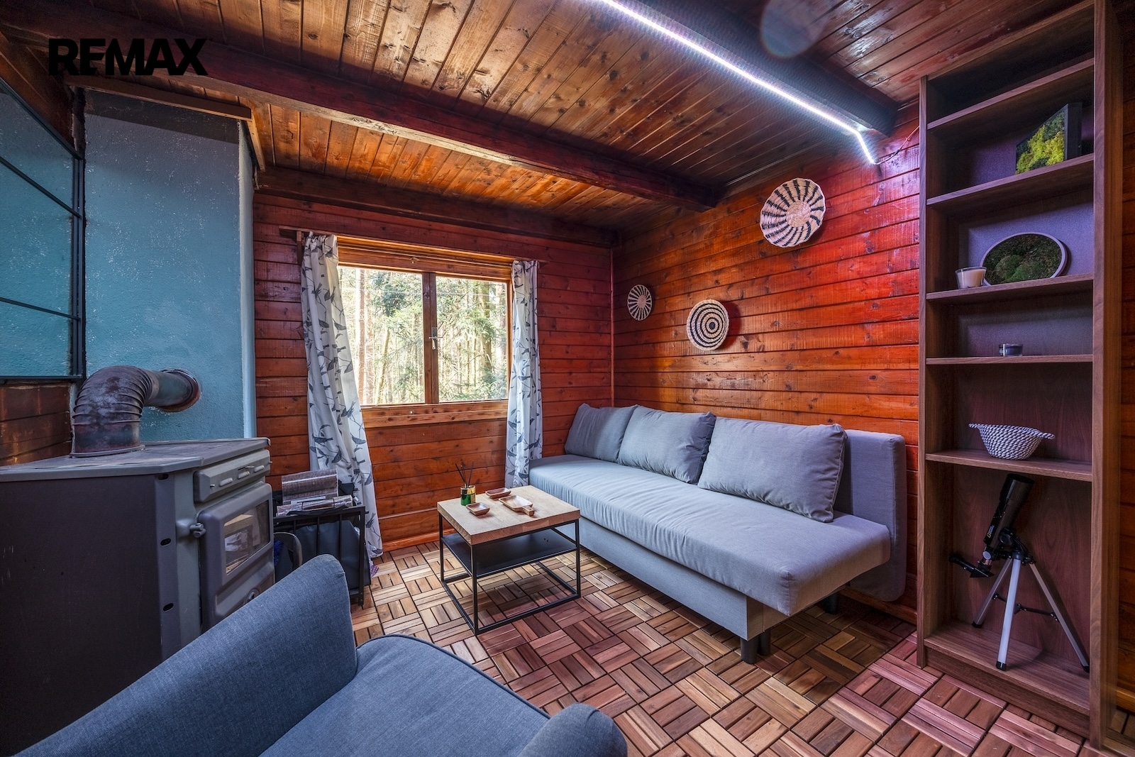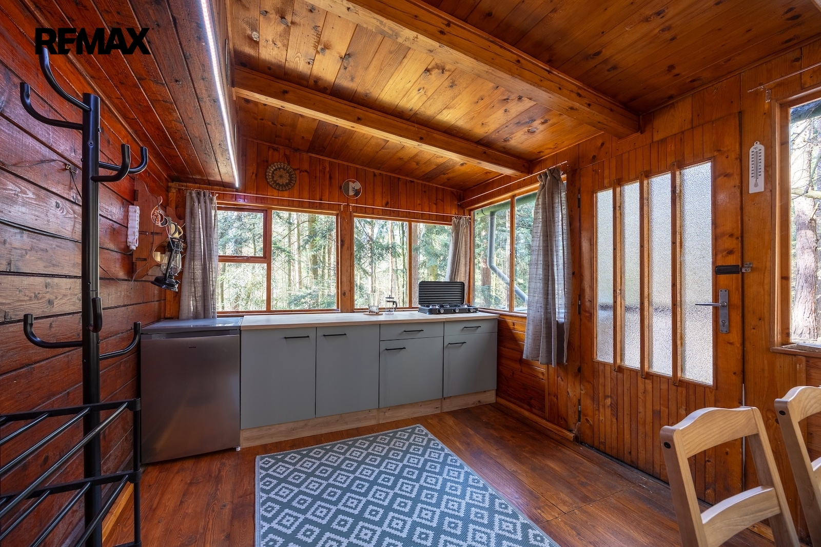 Interiér chaty prošel modernizací – k dispozici je zcela nový kuchyňský kout, nové vybavení a nové podlahové krytiny v kuchyni a obývacím pokoji.