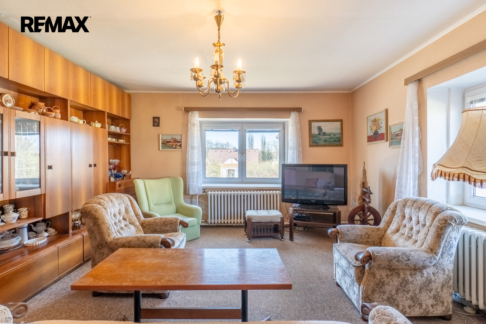 V obývacím pokoji jsou krbová kamna a ve všech obytných místnostech jsou plastová okna.