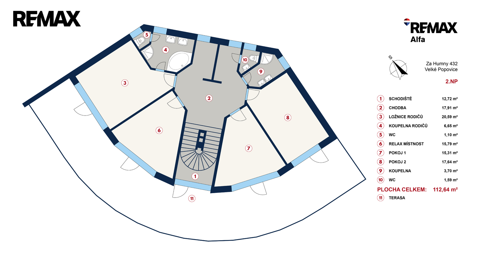 • vstup na prostornou terasu (cca 80 m²) z každé ložnice