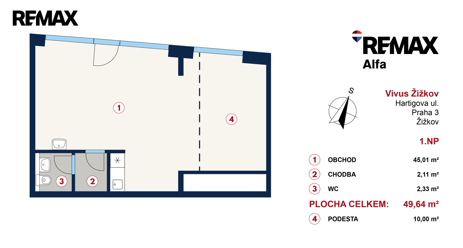 Prostory o celkové výměře cca 60 m² se nachází v přízemí, s výlohami a vstupem do frekventované ulice Hartigova, v těsné blízkosti autobusové zastávky Lukášova. Prostory jsou vybaveny rekuperací, klimatizací a vzduchotechnikou, kolaudovány budou jako kosmetický salón. Je zda také možnost provozovat nehtové studio, kadeřnictví / barber, masáže či jiné podobné služby.